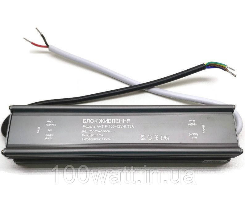 Блок живлення герметичний AVT-F- 12V 8.33А 100W для світлодіодної стрічки IP67 1019875